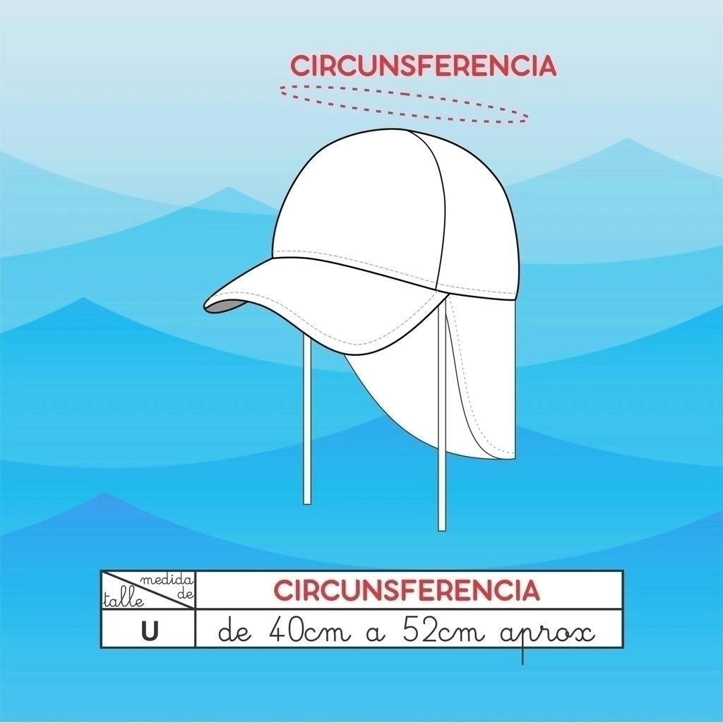 Gorro Legionario confeccionado en Lycra con filtro UV+50, con tanca para ajustar el contorno y tiritas para atar debajo del mentón.
