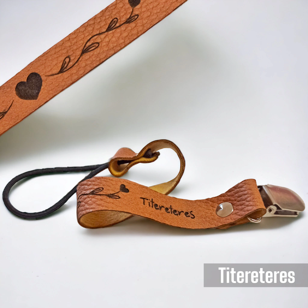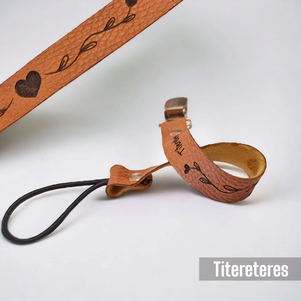 Portachupetes confeccionado en ecocuero PU, con broche Madison 20 mm x 1 unidad