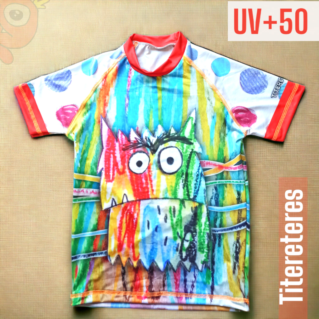 Remera Evolutiva Monstruo Confundido con Filtro UV+50 (con etiqueta que lo certifica)